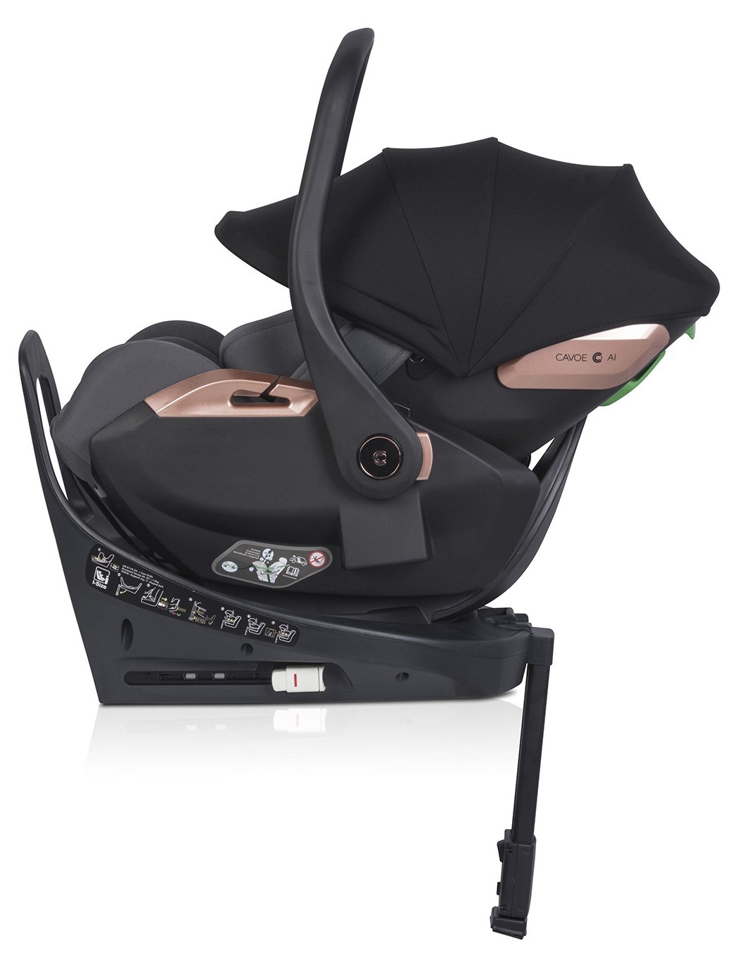 Fotelik samochodowy AI marki CAVOE posiada funkcję rozkładania do pozycji leżącej (do kąta 170°), dzięki czemu po zamontowaniu na stelażu wózka dziecięcego, może pełnić funkcję gondoli. Fotelik oferowany jest razem z obrotową bazą ISOFIX i posiada najnowszą homologację ECE R129 I-SIZE.