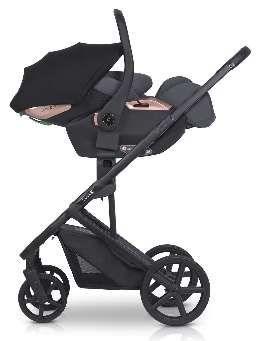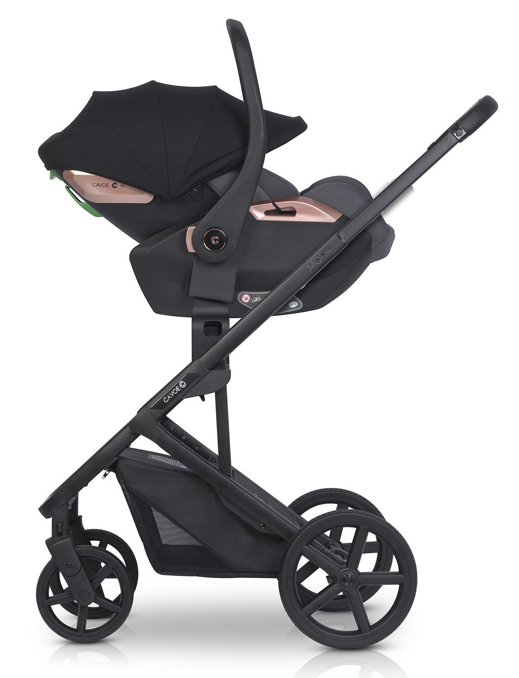 - Możliwość wpięcia w stelaże wszystkich wielofunkcyjnych wózków dziecięcych marki CAVOE