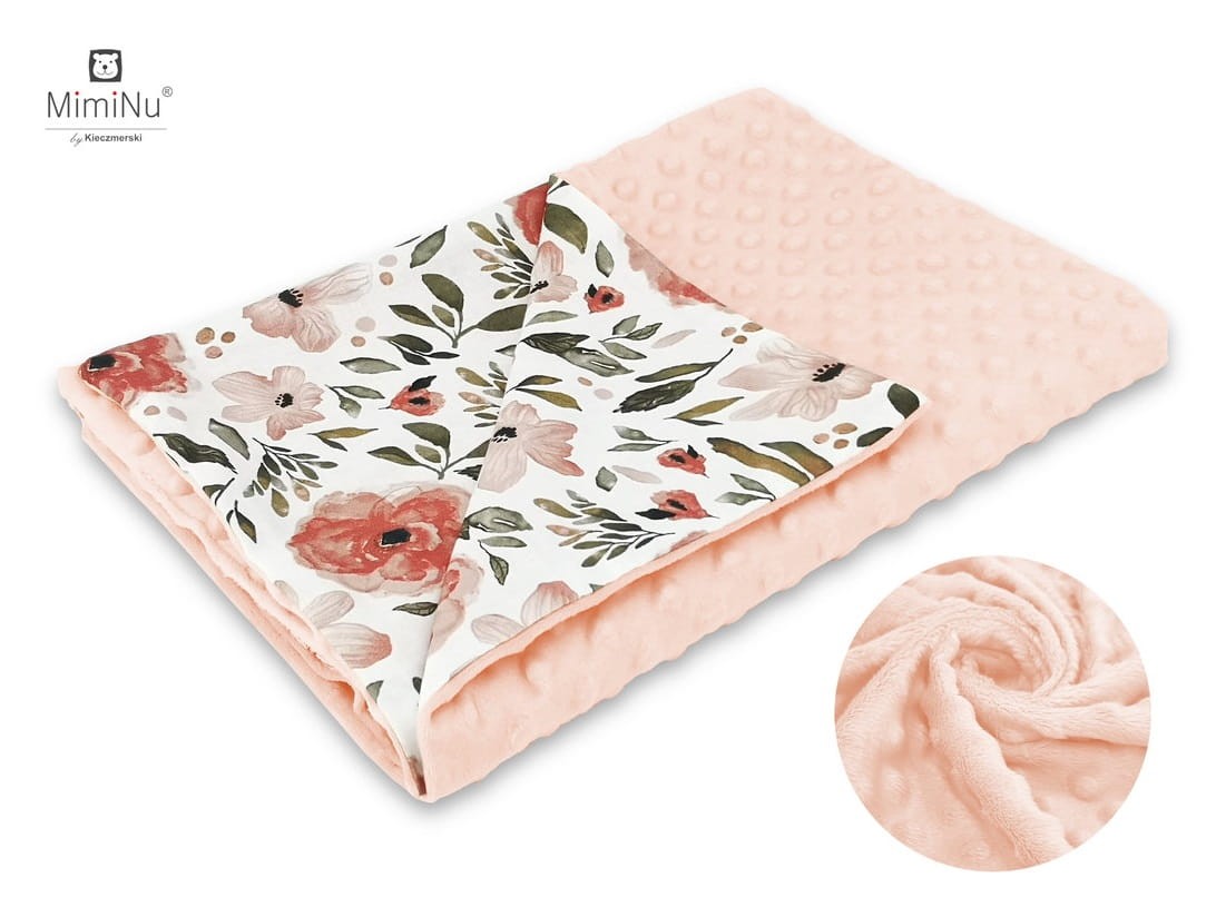 Kocyk MimiNu Kwiaty Begonii+ minky magnolia