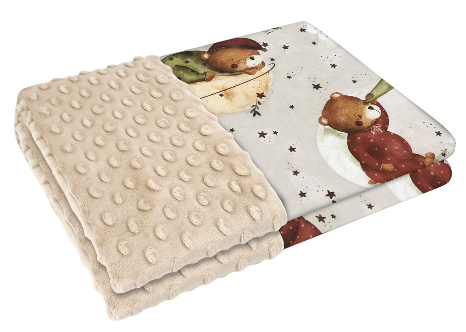 Kocyk MimiNu Miś na księżycu + minky beż