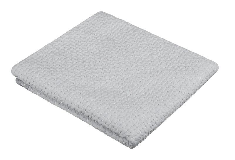 Wykonany w kolorach pastelowych ze srebrną niteczką oraz wykończony lamówką.