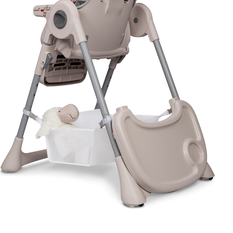 - Wysuwana taca z miejscem na kubek doskonale sprawdzi się na każdym etapie rozwoju malucha do ok. 3. roku życia Jest obszerna, a więc doskonała do nauki jedzenia - wierzchnią warstwę możesz zdjąć i umyć w zmywarce, a następnie zawiesić ją na specjalnym uchwycie z tyłu krzesła