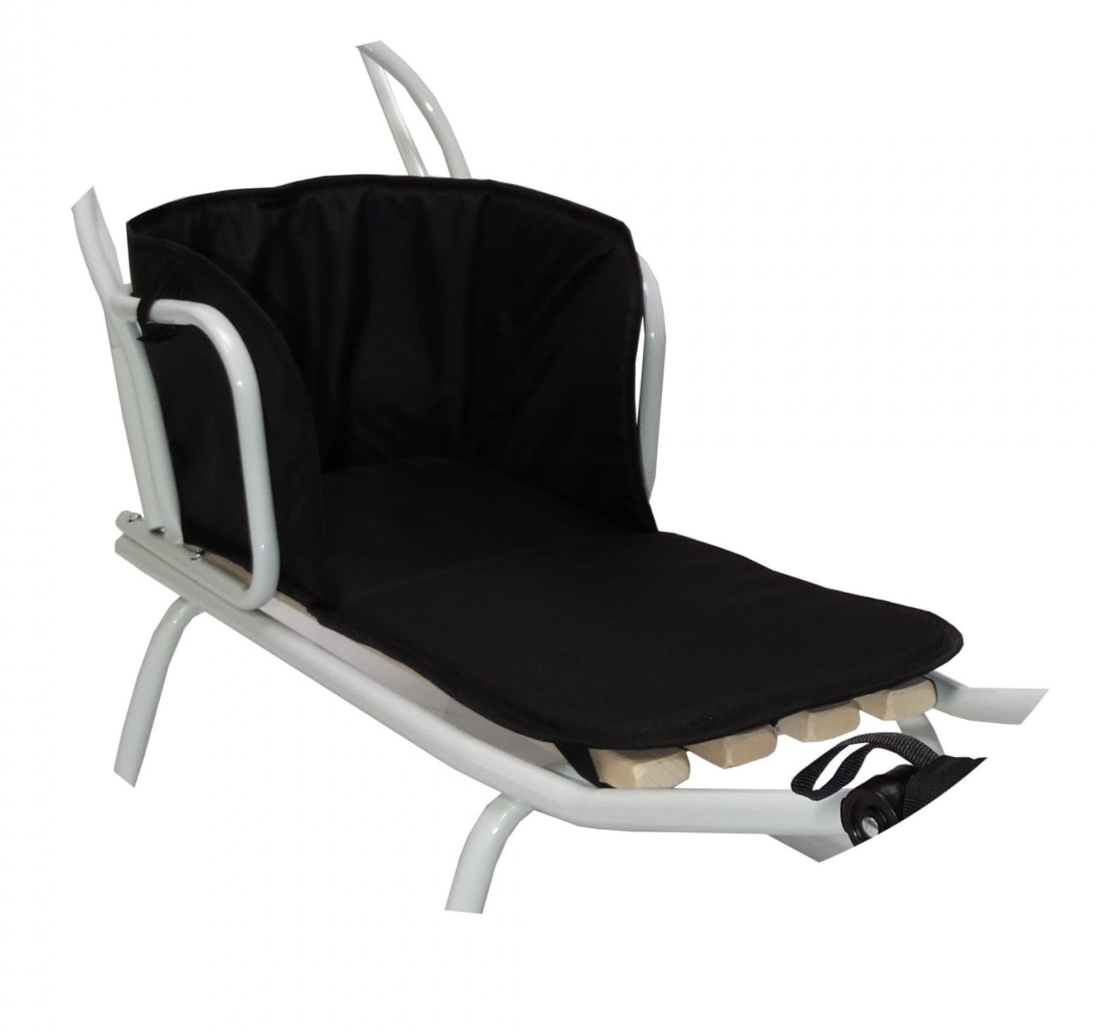 - Bezpieczeństwo - 3 uchwyty na rzepy (mocowanie do górnej krawędzi oparcia sanek) + dwa mocowania paskowe