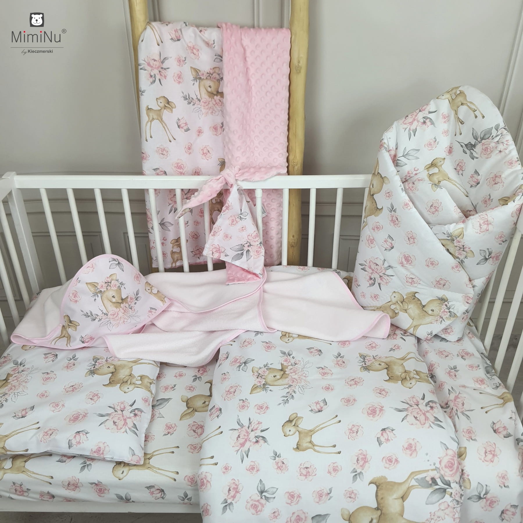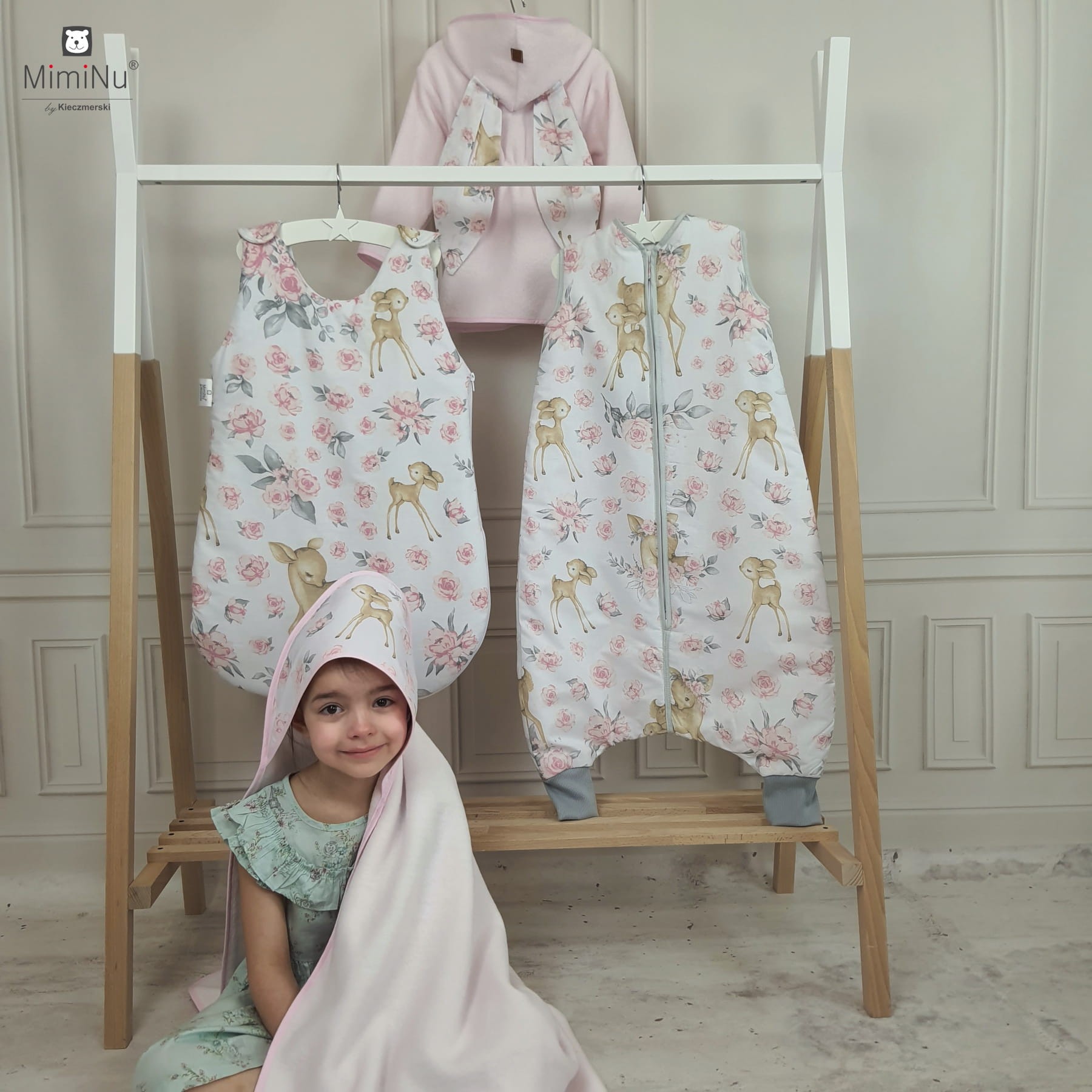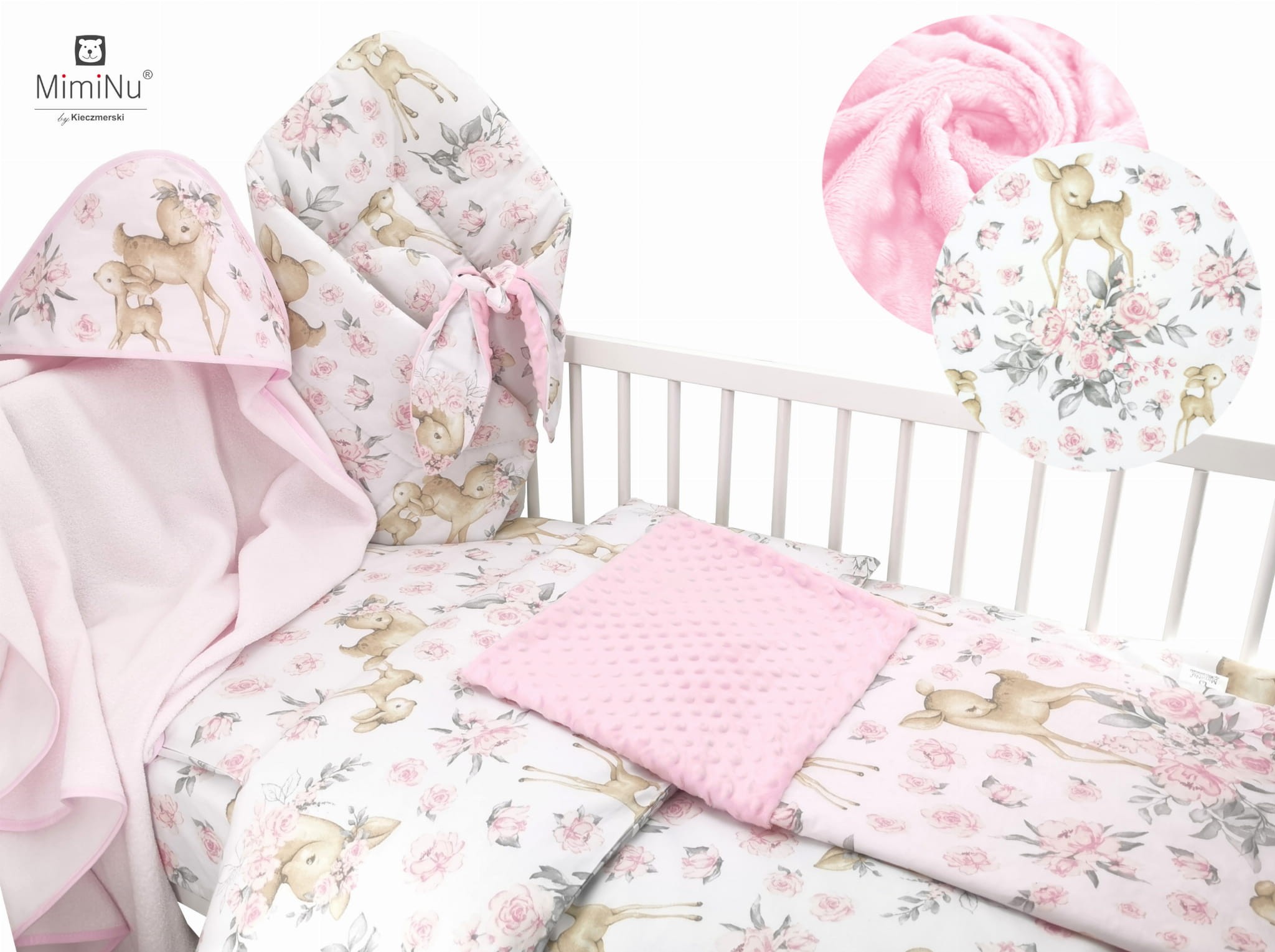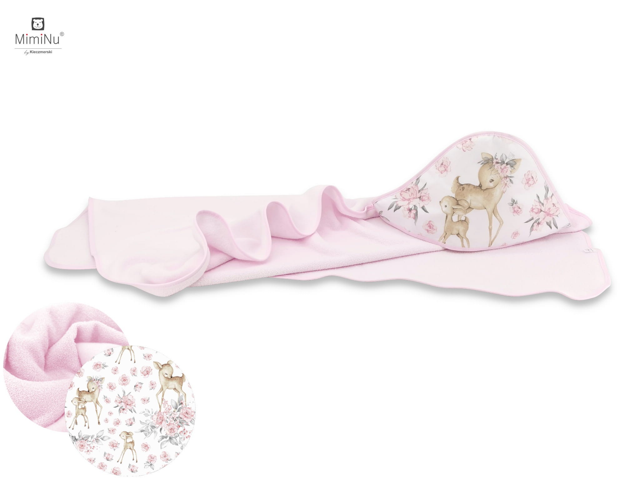 Okrycie kąpielowe ręcznik 100x100 cm Słodka sarenka róż MimiNu