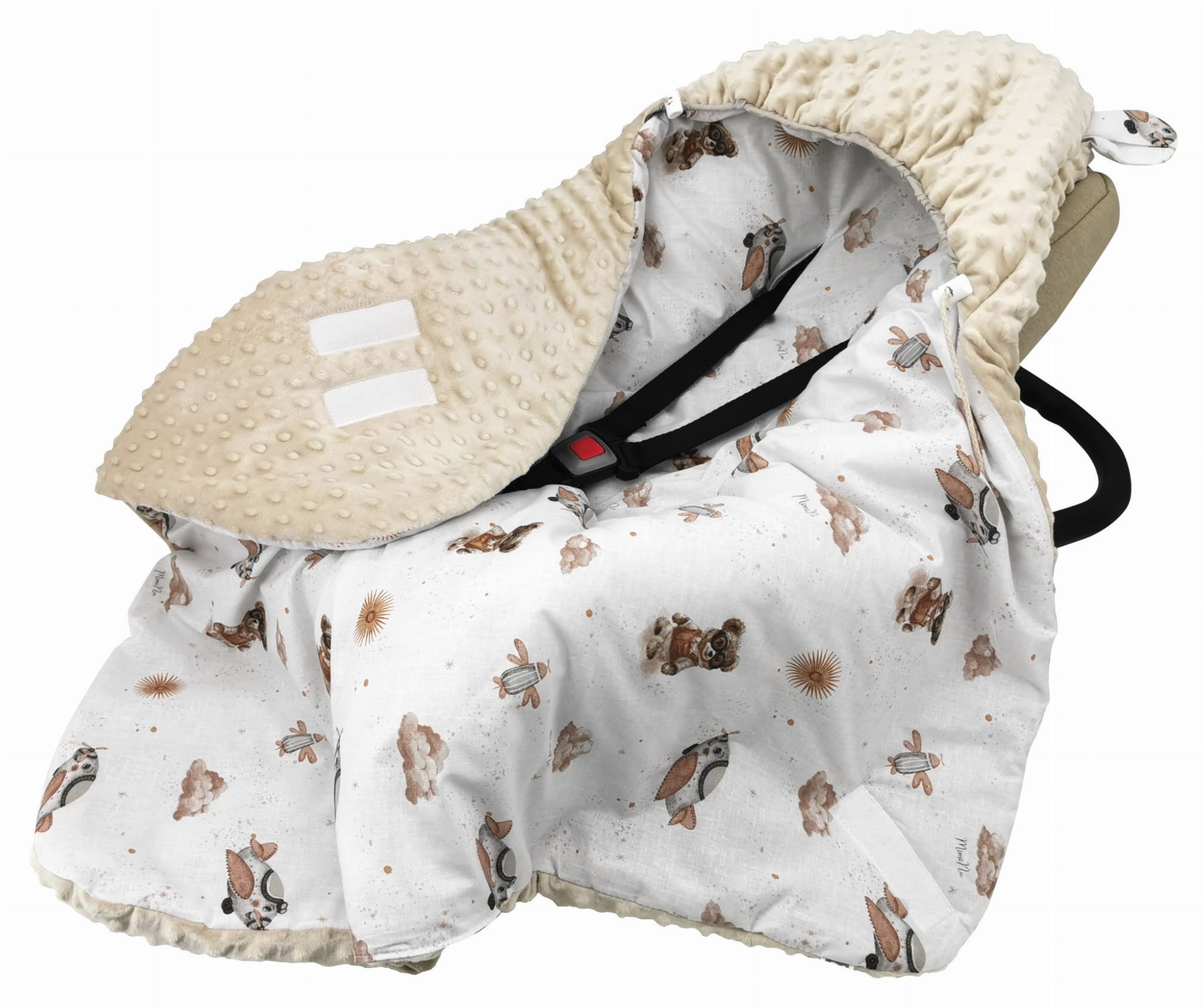 ❤️ Otulacz ocieplany 90x90 cm z kapturkiem do fotelika/gondoli został wyprodukowany z tkaniny bawełnianej oraz tkaniny minky. Otuli każdego Maluszka podczas małych i wielkich podróży, dając poczucie ciepła i bezpieczeństwa. Wygodny kapturek przykryje główkę dziecka i w razie potrzeby zakryje wrażliwe uszka. Otulaczek posiada otwory na pasy bezpieczeństwa, dzięki czemu pozostanie w foteliku po wyciągnięciu Malucha. Maluszek jest idealnie otulony i nie marznie podczas podróży. ❤️