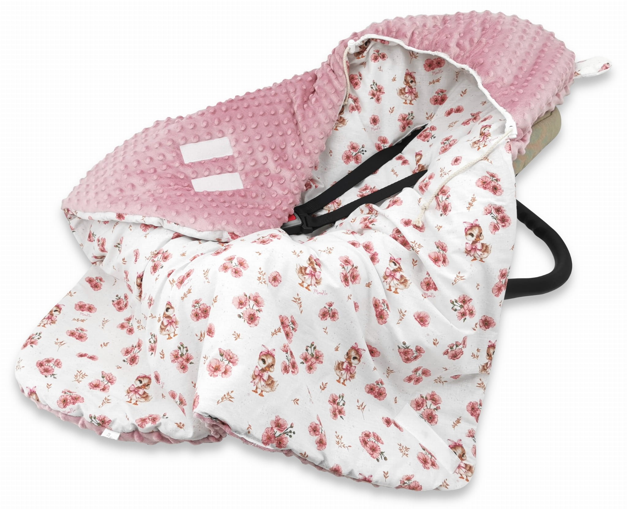 Otulacz ocieplany do fotelika KACZUSZKI róż minky MimiNu