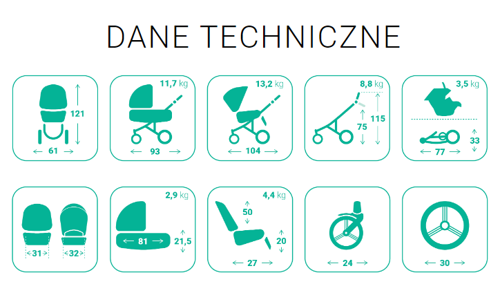 - pokrowiec na nóżki osobny w każdym elemencie wózka