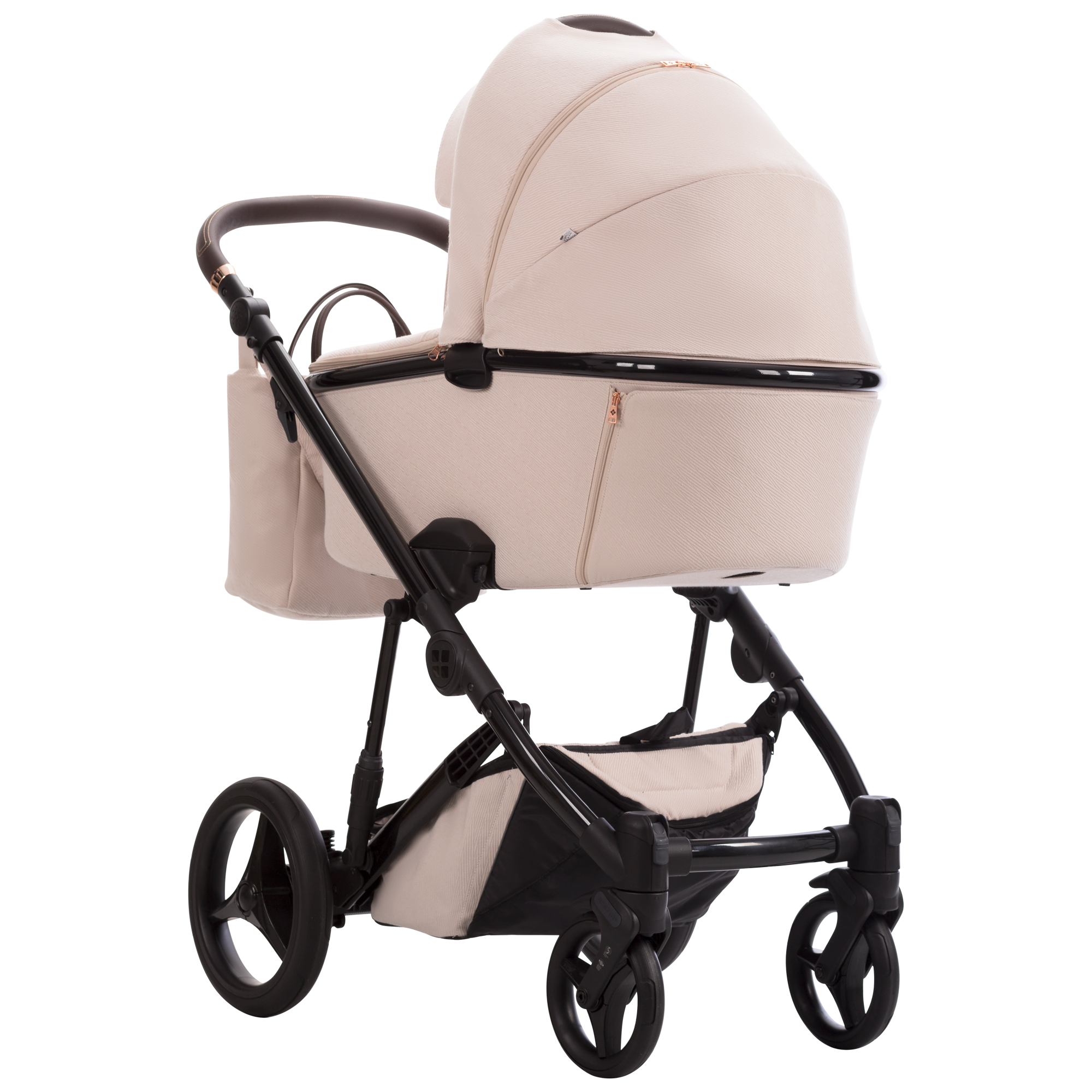 Ramka gondoli idealnie koresponduje ze lśniącym stelażem, co sprawia, że design wózka prawdziwie zachwyca. Cechą charakterystyczną Loren Premium Class jest szereg wyszukanych elementów, takich jak dodatkowe przeszycia czy hafty, dzięki którym już na pierwszy rzut oka widać, że jest to wózek z najwyższej półki.