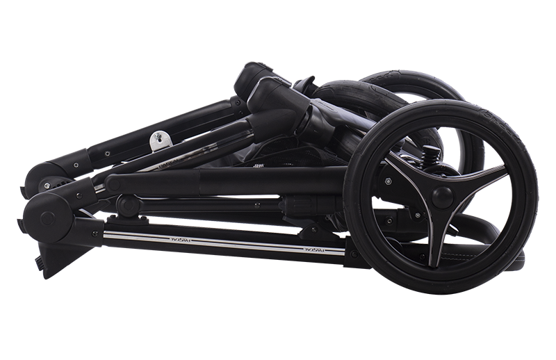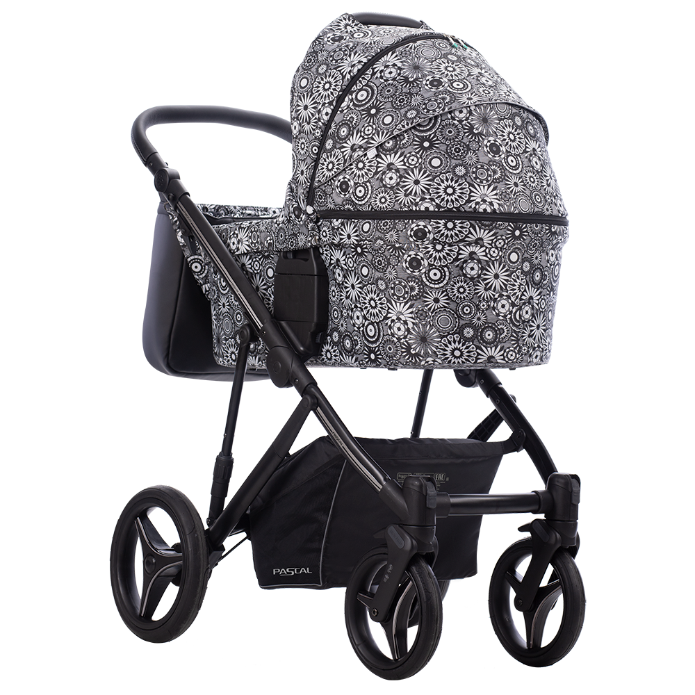 W wózku Pascal zastosowano nowoczesny stelaż. Jest on oparty na kołach Flexy Wheels, które cechują się dużą sprężystością, a przy tym nie wymagają pompowania. Stelaż pozbawiony jest tylnej belki konstrukcyjnej, co ułatwia jego prowadzenie. Boczne regulowane amortyzatory Soft/Hard umożliwiają ustawienie miękkiego lub twardego zawieszenia. Systemy SAS i DMS minimalizują wstrząsy podczas jazdy po nierównym podłożu oraz chronią przed blokowaniem się kół. Stelaż wózka Pascal możesz złożyć do kompaktowych rozmiarów, co sprawdzi się podczas przechowywania lub transportu.