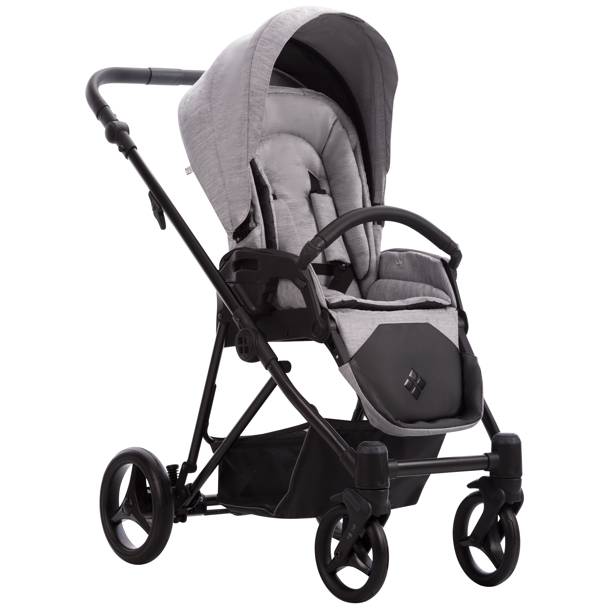 Stelaż wyposażono w systemy SAS (absorpcja drgań i wstrząsów podczas jazdy) oraz DMS (ochrona przed blokowaniem kół na nierównościach). Wąski hamulec Stop&Go sprawia, że możesz jeszcze wygodniej zablokować koła wózka. Wąskie i mniejsze koła bezobsługowe sprawiają, że wózek doskonale się prowadzi, a przy tym jest najlżejszym wózkiem ofertowanym przez firmę Bebetto. Konstrukcja jest wyposażona w otwarty kosz – który pozwala na przewożenie rzeczy potrzebnych podczas spaceru, zapewniając do nich wygodny dostęp. W koszu można wygodnie umieścić sakwę zamykaną.