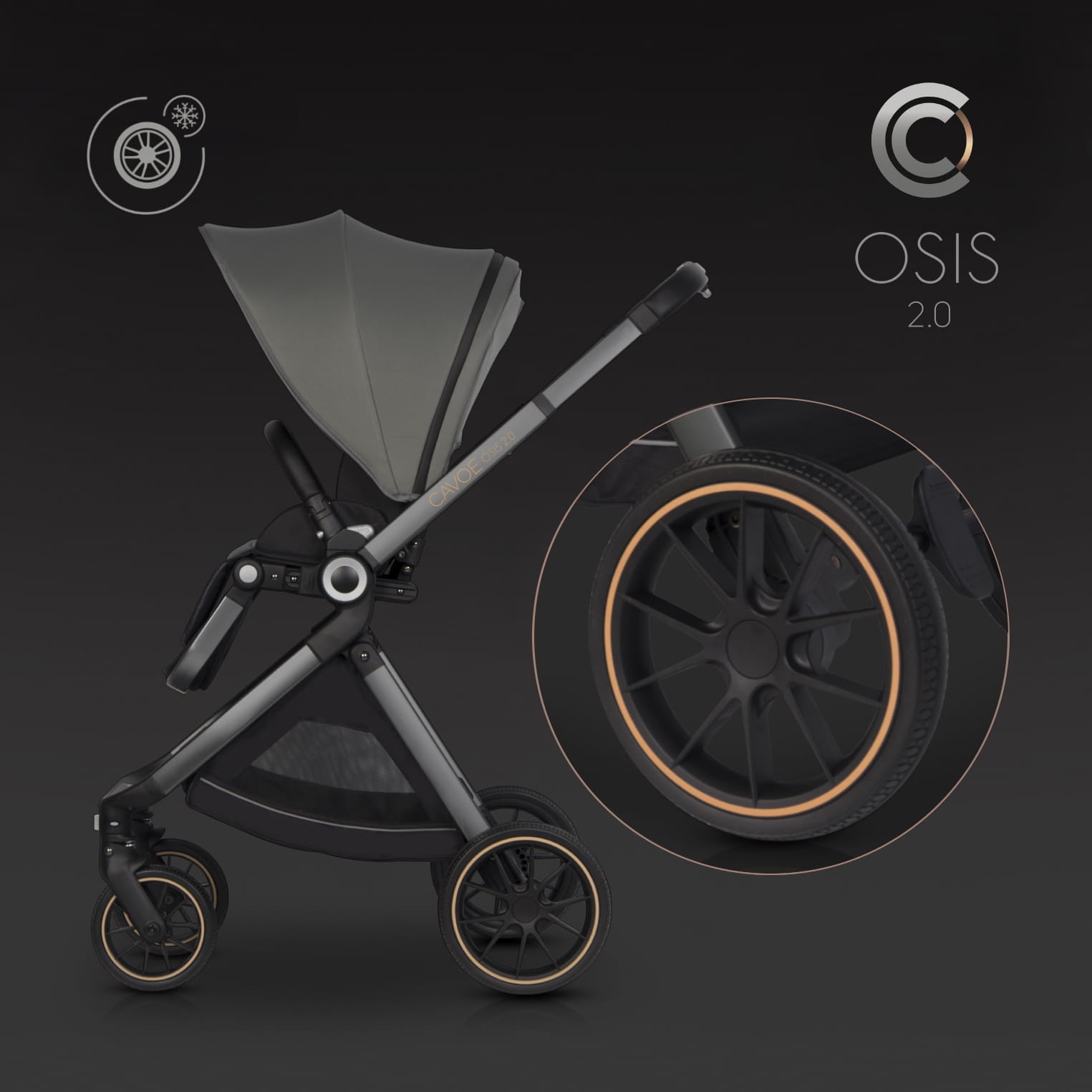 Wózek dziecięcy ❤️ OSIS 2.0 ❤️ jest drugą generacją popularnego wózka marki CAVOE. Nowa wersja posiada większe koła, dłuższy podnóżek oraz dodatkowo wzmocniony stelaż przeznaczony dla dzieci o wadze do 22 kg. Dodatkowo można obciążyć koszyk pod wózkiem do 3 kg oraz opcjonalną torbę do 1,5 kg uzyskując tym samym całkowitą nośność wózka do 26,5 kg. Większe koła poprawiają komfort prowadzenia wózka i dodatkowo ułatwiają podpicie podczas wjeżdżania na krawężnik.