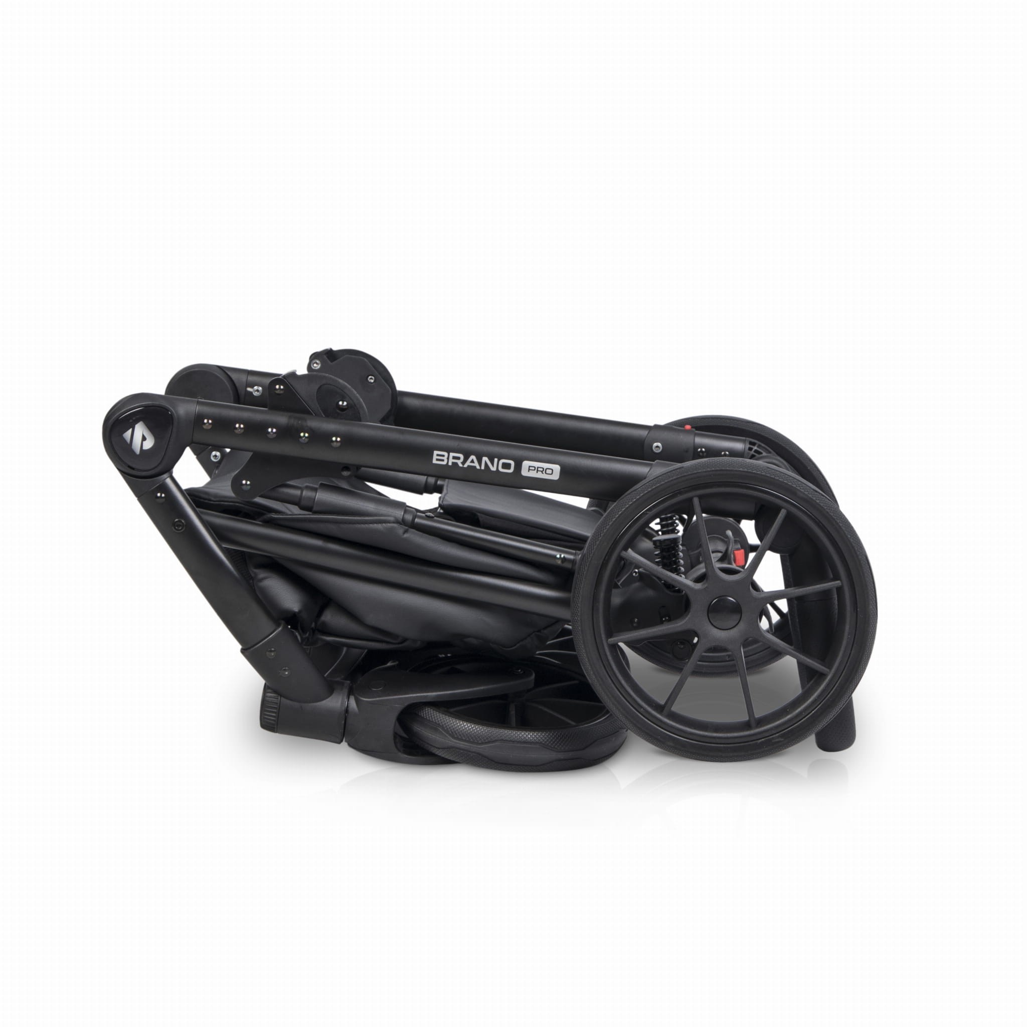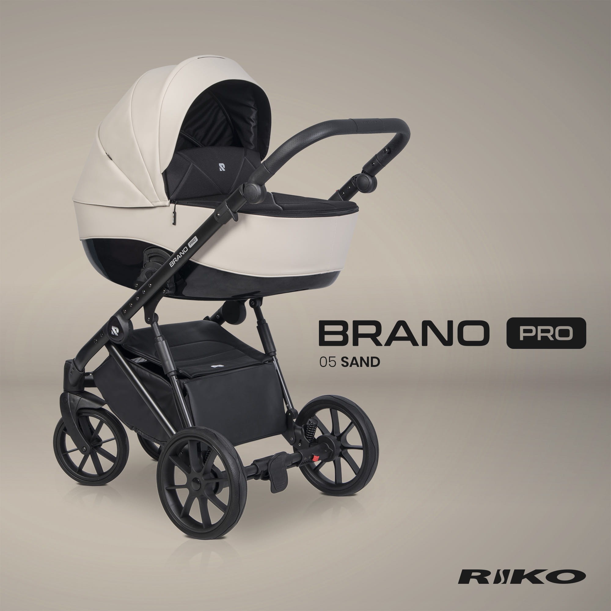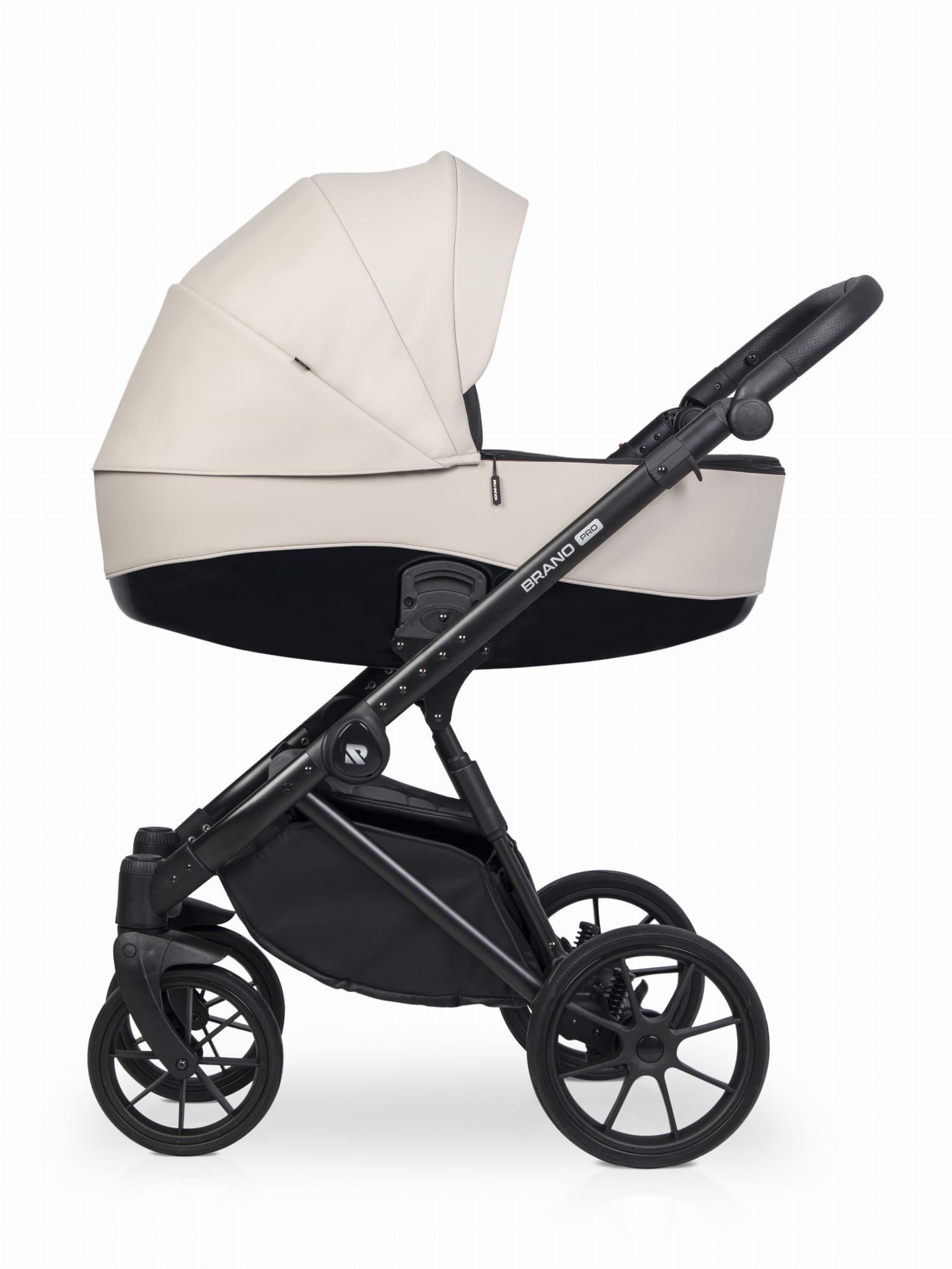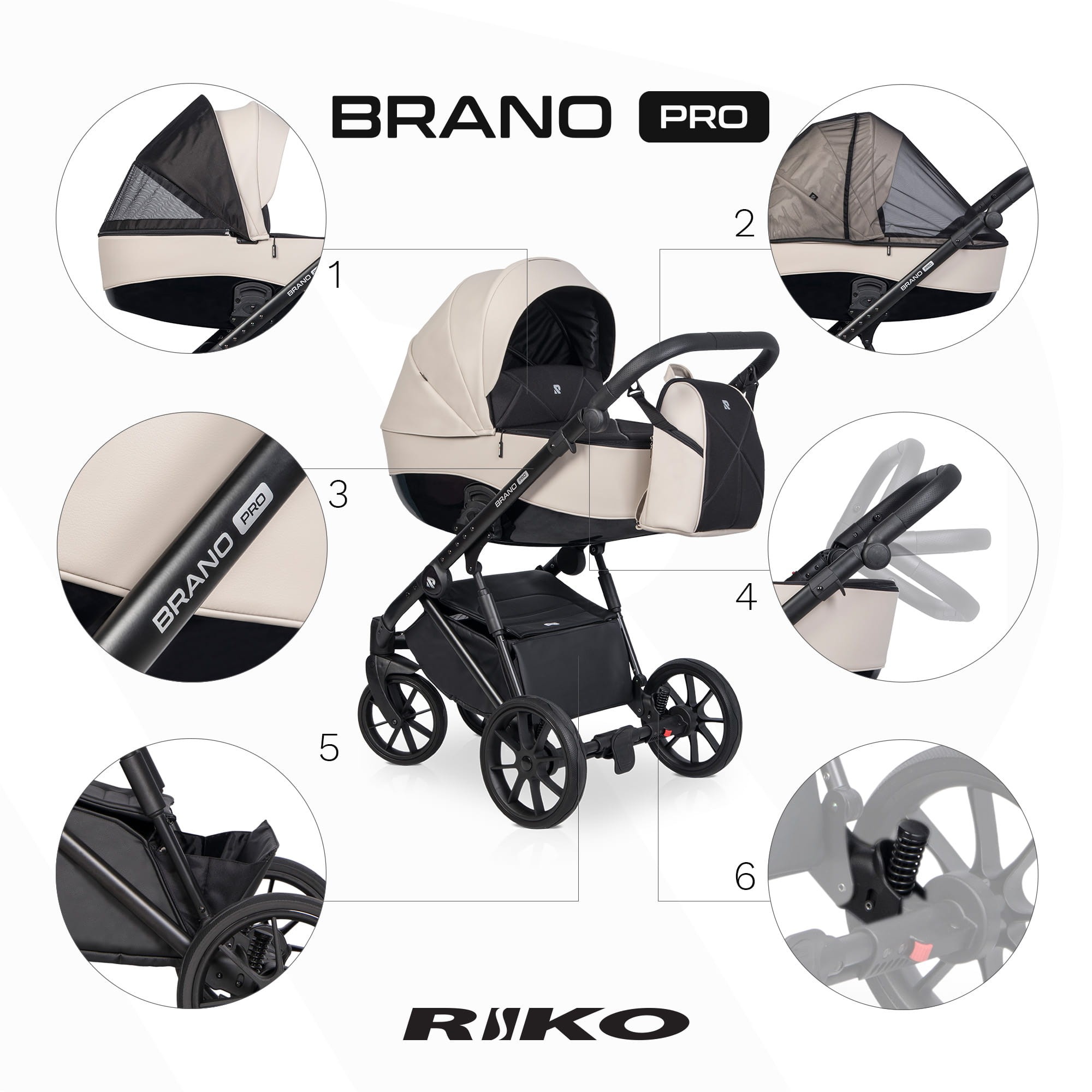 Cechą charakterystyczną wózków z serii Brano jest bezawaryjność i wyjątkowa wytrzymałość, dzięki którym Brano Pro z pewnością posłuży więcej niż jednemu dziecku. Najnowsza kolekcja Riko Brano Pro posiada tapicerkę uszytą z modnej i odpornej na zabrudzenia skóry ekologicznej połączonej czarnymi materiałowymi elementami. Całości dopełnia czarny stelaż ze srebrnymi nadrukami.