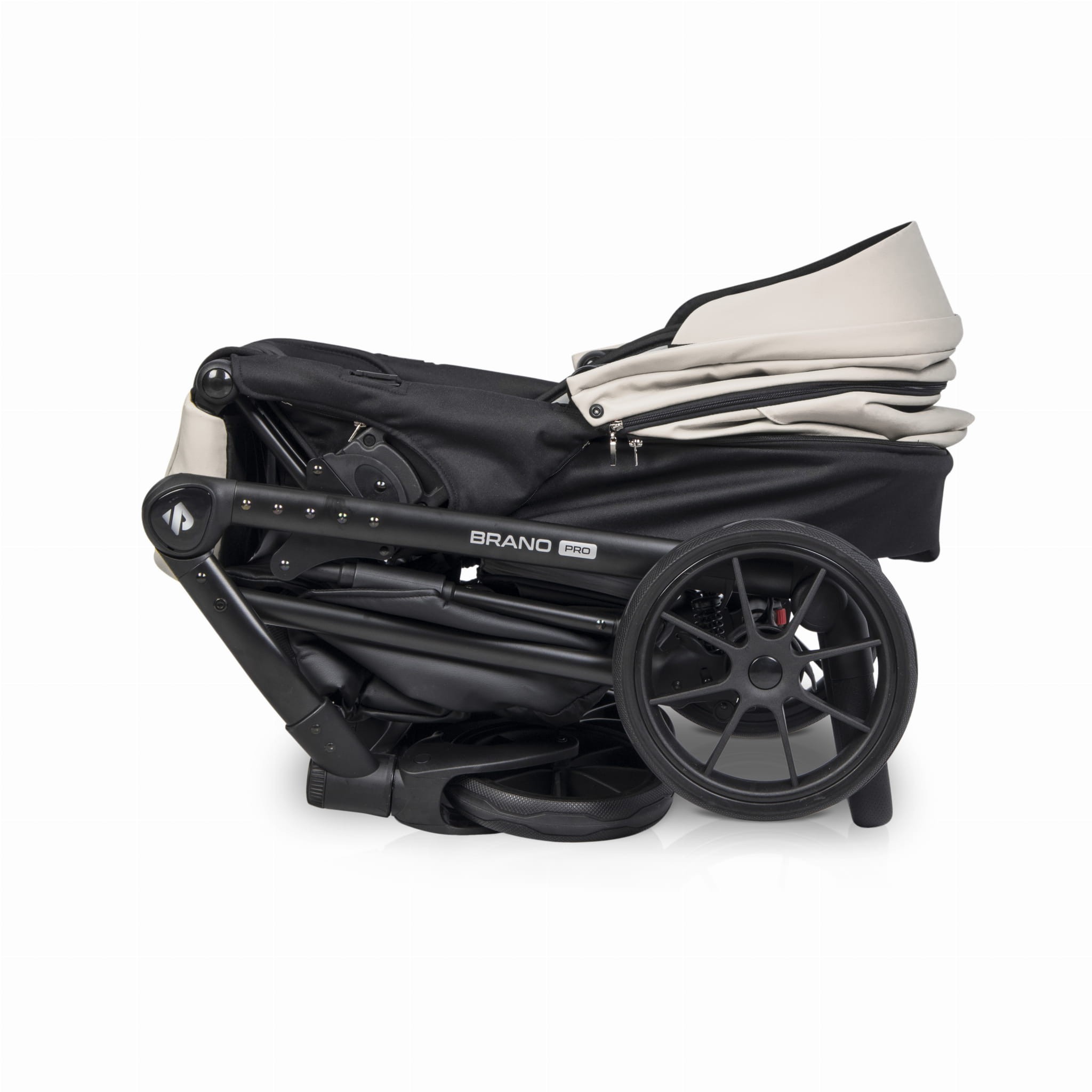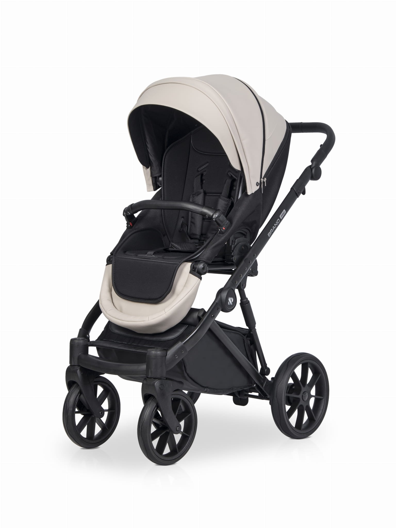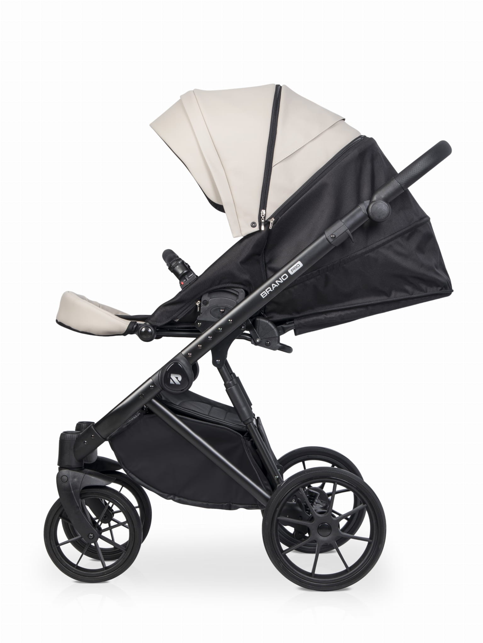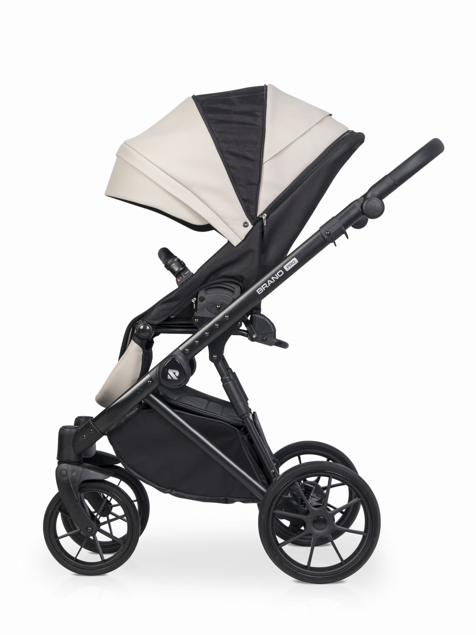 Cechą charakterystyczną wózków z serii Brano jest bezawaryjność i wyjątkowa wytrzymałość, dzięki którym Brano Pro z pewnością posłuży więcej niż jednemu dziecku. Najnowsza kolekcja Riko Brano Pro posiada tapicerkę uszytą z modnej i odpornej na zabrudzenia skóry ekologicznej połączonej czarnymi materiałowymi elementami. Całości dopełnia czarny stelaż ze srebrnymi nadrukami.
